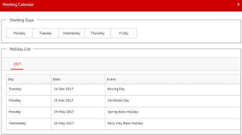 to define working days and holidays. This integrates into the