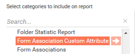 New Category for Form Association Custom Attribute: A new Report Category called Form Associate Custom Attribute is added. Report created using this Category can be run for only one Project at a time. |